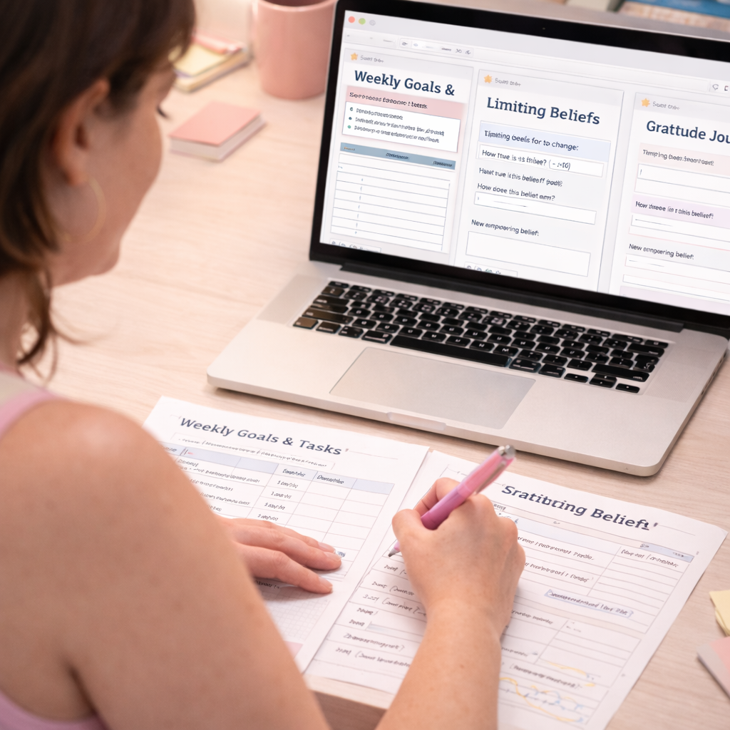 Puedes trabajar objetivos relacionados con hábitos saludables, organización personal, constancia, cuidado personal, bienestar emocional, alimentación consciente, movimiento o cualquier área de tu vida donde sientas que te estás postergando.